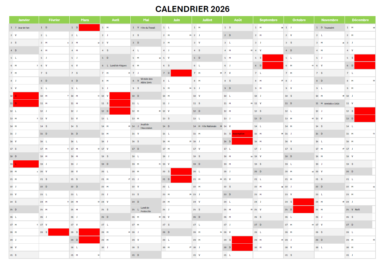 Veuillez trouver ci-dessous, le calendrier des réservations qui vous permet de savoir si la salle est libre aux jours souhaités.